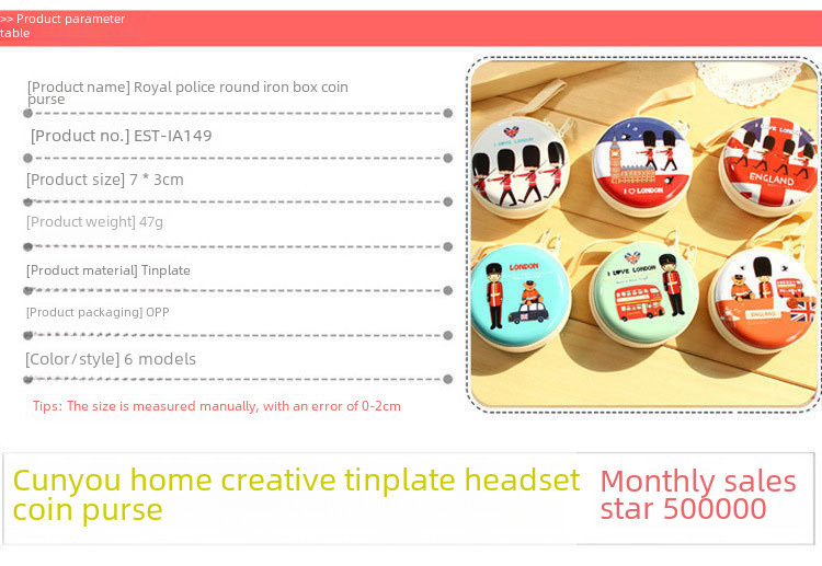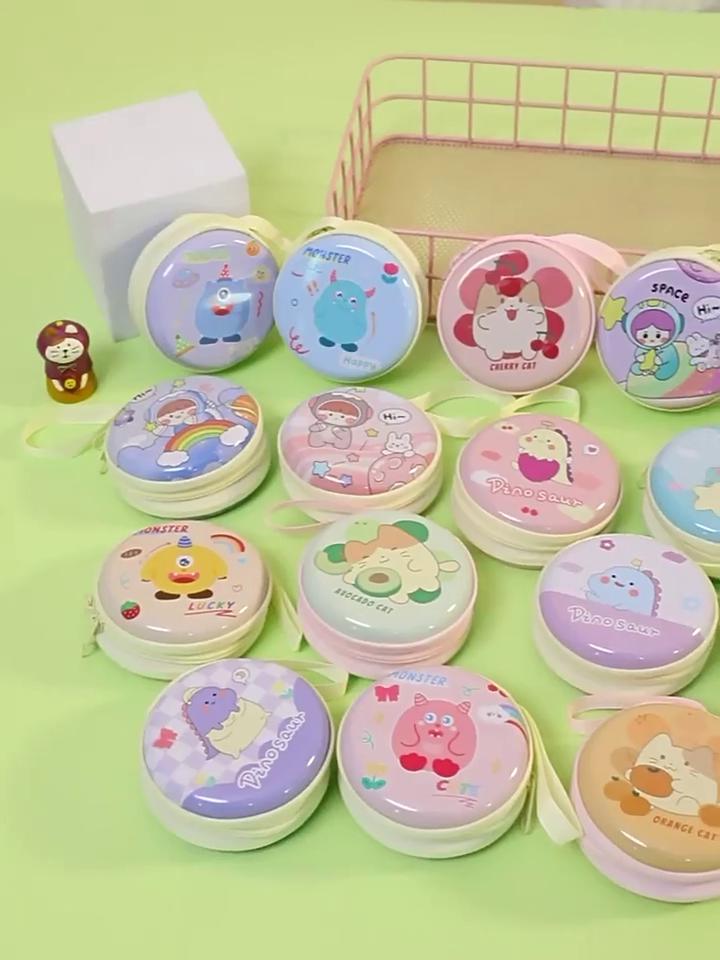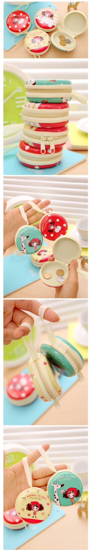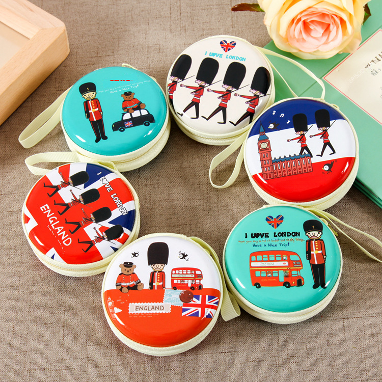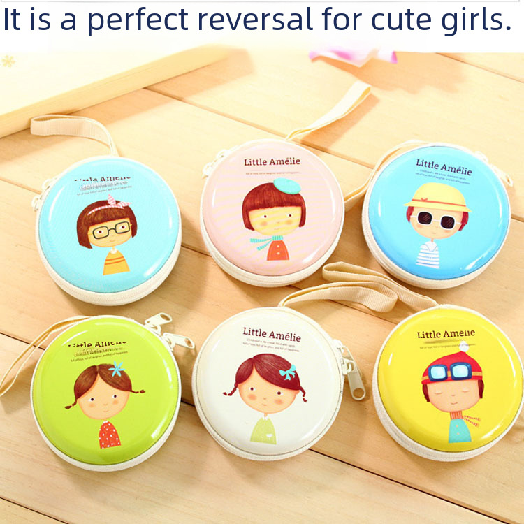 Children s creative cute tinplate coin purse cartoon coin purse earphone cable round zipper storage bag small gift