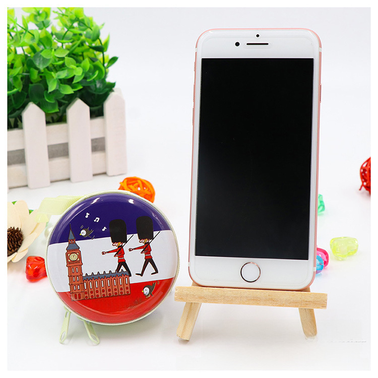 Creative tinplate coin purse cartoon mini round earphone zipper bag portable coin children gift bag wholesale