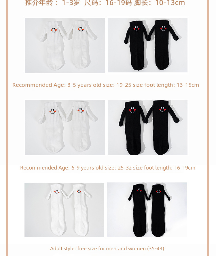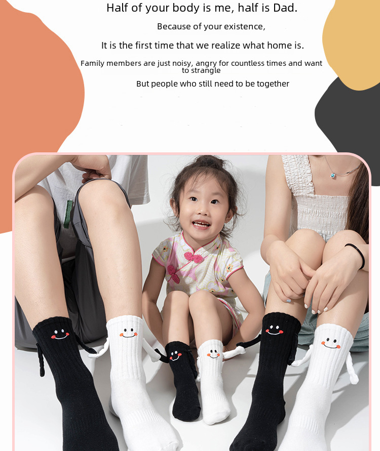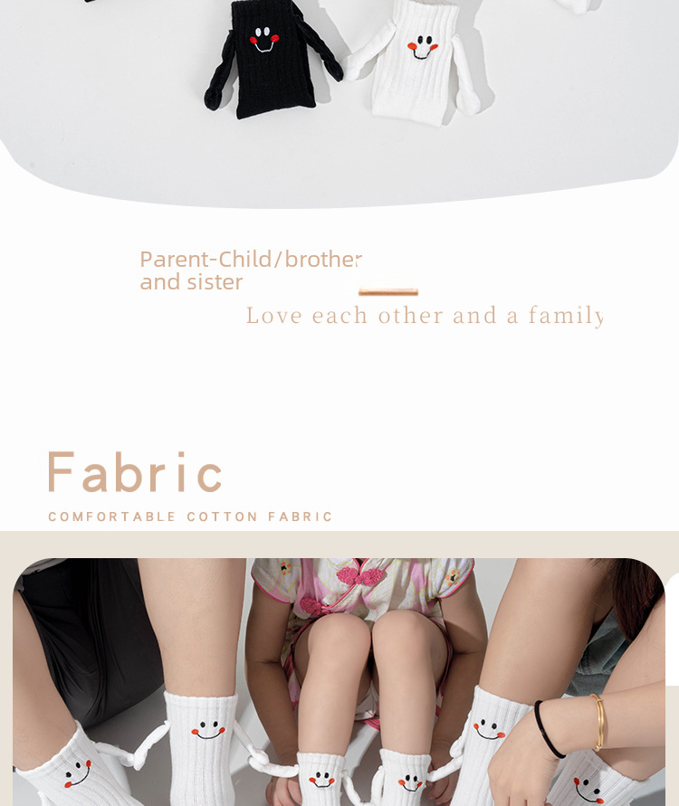 | Fabric name : Combed cotton,No: Machine sewing head,Sweat absorption,Smiling face,Couple theme,3D effect,Bags,Neutral/both men and women,Middle Child (7-12 years old),Toddler (1-3 years old),Youth (18-40 years old),Cotton,Middle tube,168N,Fall 2023,Summer,Spring,Autumn,Four Seasons Universal,Ordinary casual socks,Zhuji,Yes,MC-23185,Minchuang foot,Adult White,Adult Black,Baby White S(1-3 years old),Baby Black S(1-3 years old),Baby White M(3-5 years old),Baby Black M(3-5 years old),Baby White L(6-9 years old),Baby Black L(6-9 years old),White two adults + L one pair,White two adults + M one pair,White two adults + S one pair,Black two adults + L one pair,Black two adults + M one pair,Black two adults + S one pair,Black two adult + S + L two pairs,Black two adult + S + M two pairs,White two adult + S + L two pairs,White two adult + S + M two pairs,Black and White two adult + S + M two pairs,Black and White two adult + S + L two pairs,Free size,No,70%(inclusive)-80%(Exclusive),Leisure,Single needle |