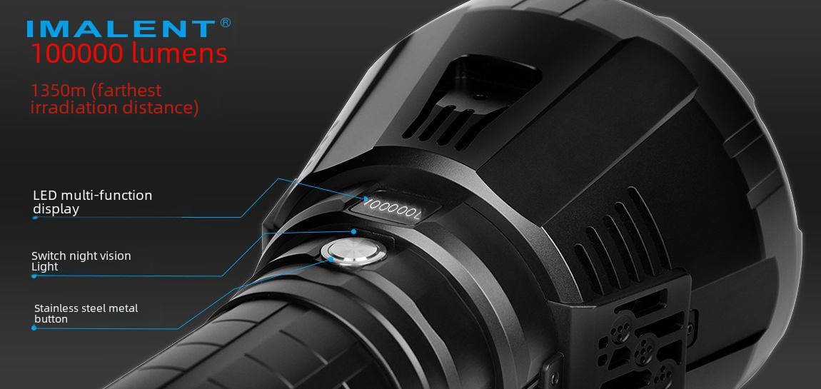 | Origin : Shenzhen,No,Eminent/IMALENT,M series,Suitcase,16.8V,8000,1350m,458000 Candela,4 hours and 25 minutes,50000 hours,21700-4000*8,500 times,Long 265*129 head diameter * 59mm barrel diameter,Aluminum alloy,North America, Europe, South America,Cave, Patrol, Camping, Hunting, Search, Defense, Night Fishing,Floodlight,Yes,MS18-US Standard Charge,MS18-British Standard Charge,MS18-European standard charge,MS18-Australian Standard Charge,Hand-held flashlight,No,EU CE Certification,No |