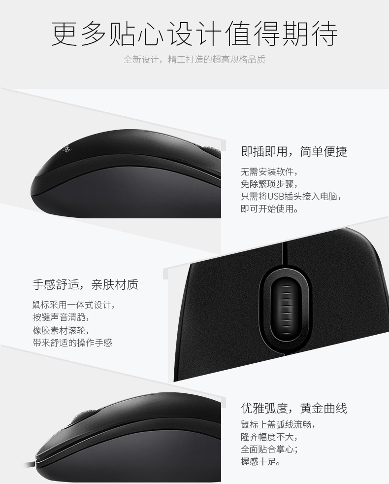 | Brand : Logitech/Logitech,Logitech genuine M90 wired mouse,2017,Optical Mouse,Common rat (100-120mm),Wired,Desktop,1000dpi,3,USB,Support,Third gear and below,1.5,Photoelectric,1.5,Height 36mm Length 118mm Width 60mm,110g,Yes,National Joint Insurance,Mouse x1, user document x1, package x1,Black,No,No,Support,No |