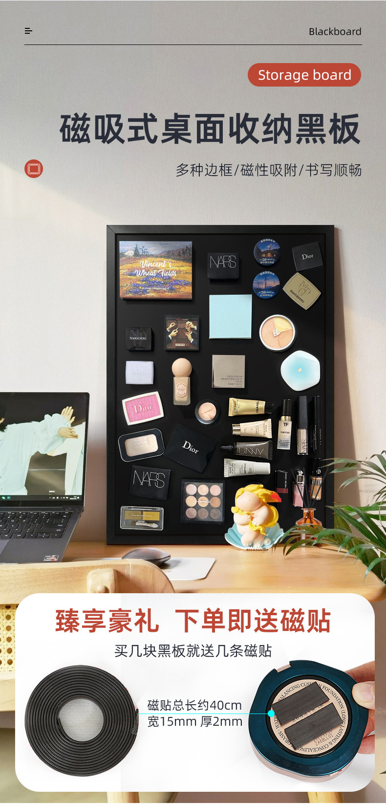 Magnetic blackboard household cosmetics storage board refrigerator sticker display wall sticker shop advertising board menu writing board