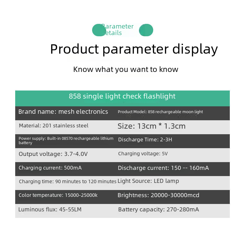 | Processing customization : Yes,No,No,Below 50 meters,No,858 white light bulk,858 white OPP self-sealing bag,858 white small white box,858 white iron boxed,858 yellow light bulk,858 yellow light small white box,858 yellow light iron box,858 yellow OPP self-sealing bag,858 white wood boxed,No additional functions,Que's,No,Stainless Steel,Jiangxi,270mah,Charging,2w,LED,858 flashlight,Yes,Hiking,Camping,teaching,Daily carry,18904525367,600,Hand pressure |