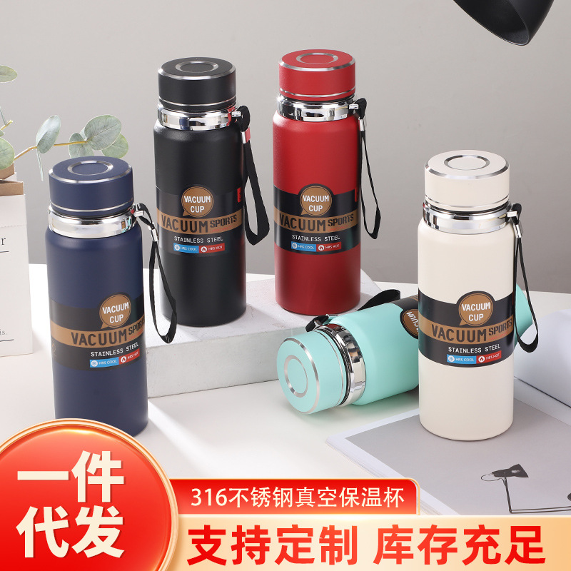 316 stainless steel vacuum cup business large capacity outdoor portable sling sports Pot Men's Sun pot lettering logo