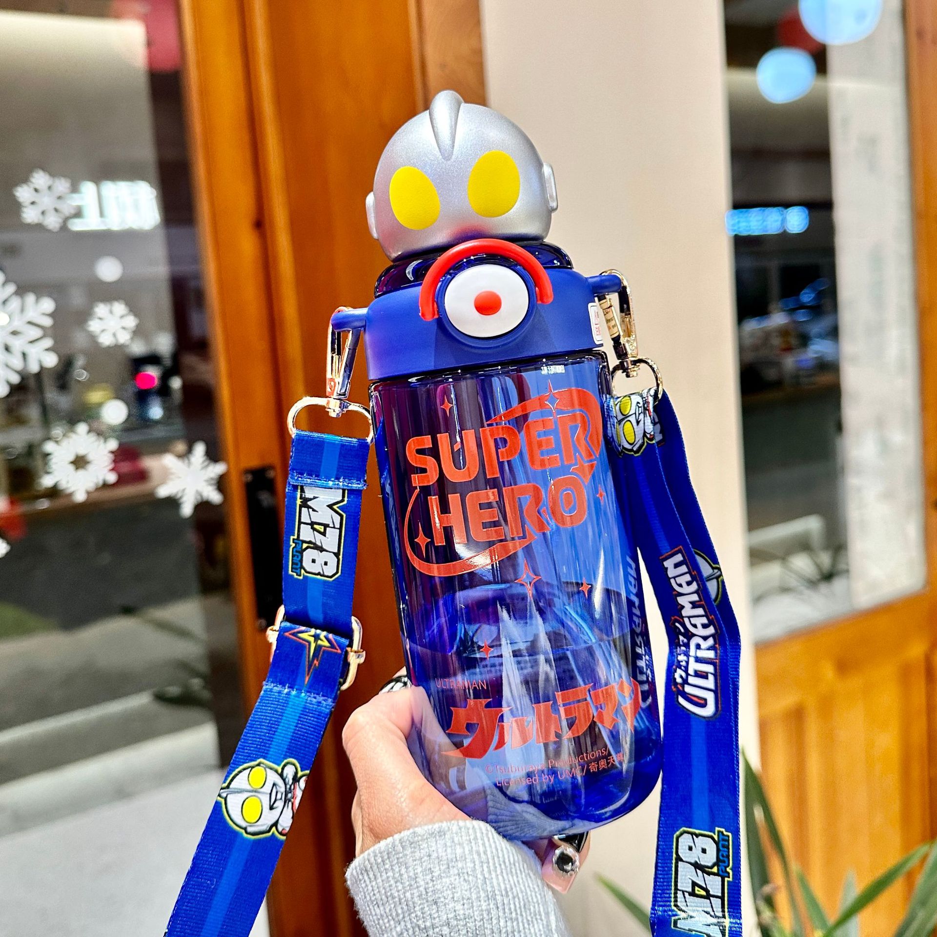 Ultraman children's water cup for school summer boys drop-resistant large capacity Primary School kindergarten strap kettle
