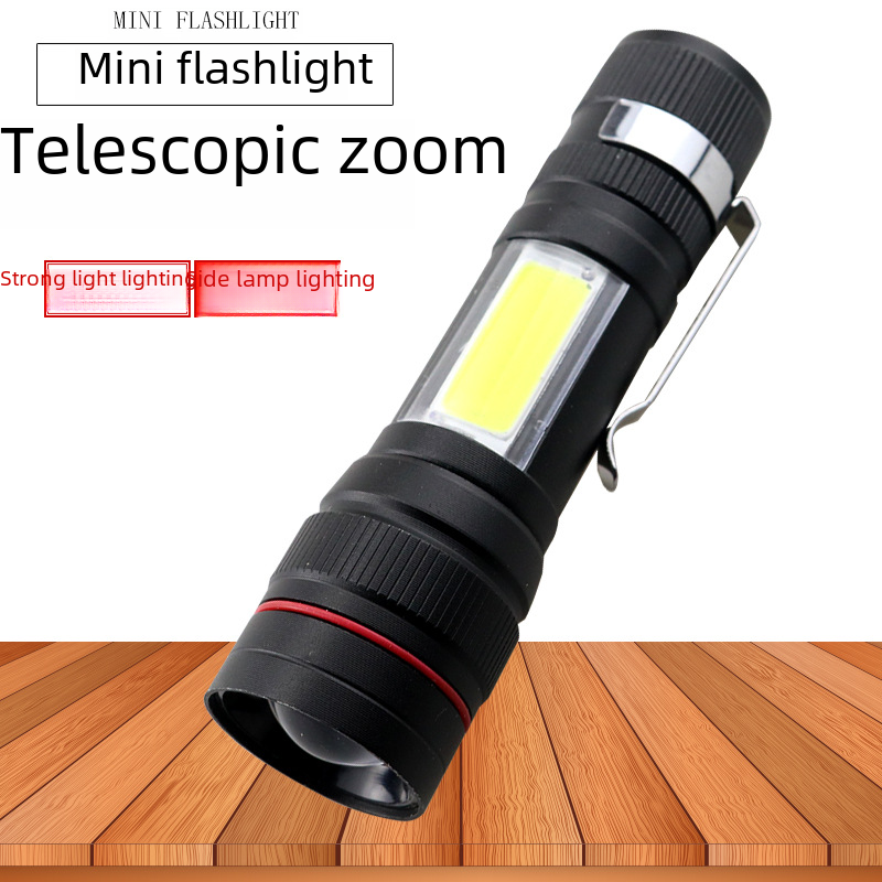 Mini T6 flashlight built in 18650 lithium battery telescopic zoom side light COB with pen holder compact portable wholesale