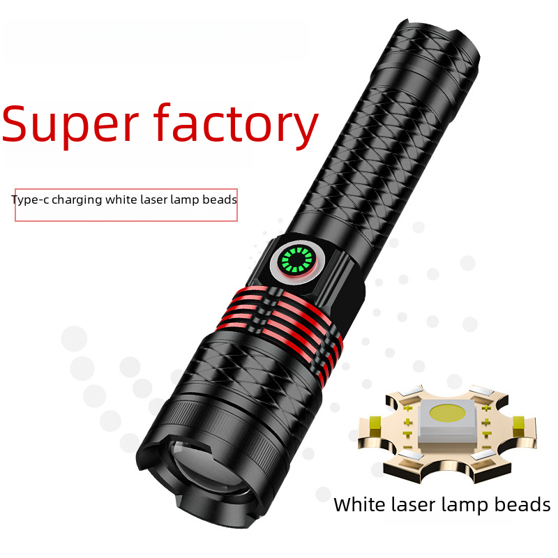 Cross border 30W White laser flashlight TYPE C charging with power display waterproof remote zoom flashlight