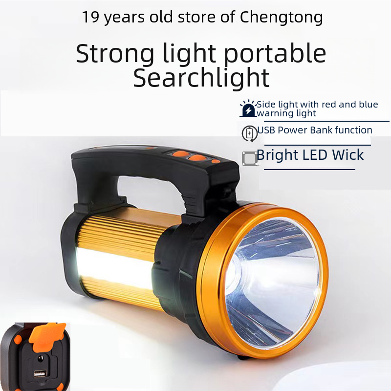 Cross Border led high power night fishing strong light portable lamp outdoor rechargeable flashlight long range emergency portable Searchlight