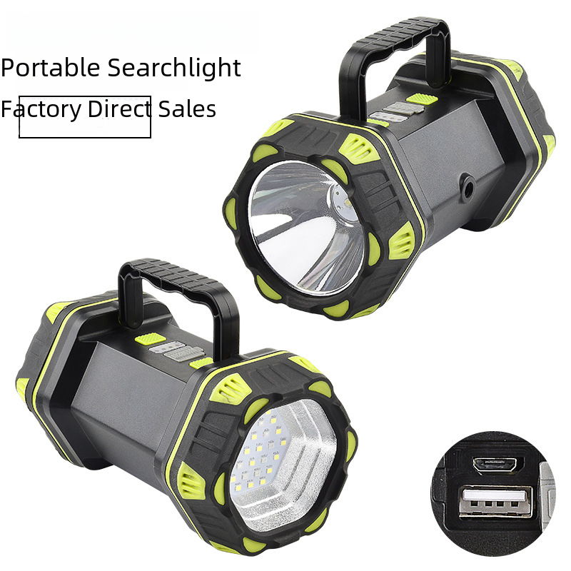 Cross border new emergency portable Searchlight with output outdoor super bright work night fishing double headed warning light flashlight
