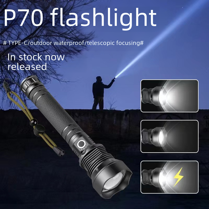 Spot P70 flashlight telescopic zoom cross border new USB rechargeable outdoor lighting aluminum alloy flashlight