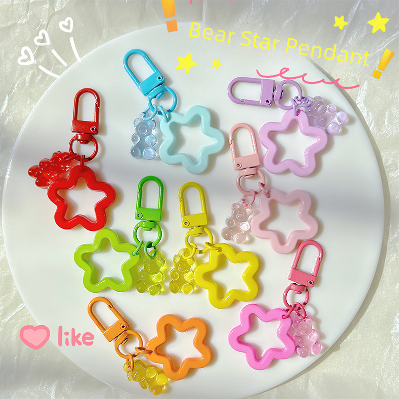 Colorful bear five pointed star acrylic keychain pendant earphone case airpods ornaments cute bag