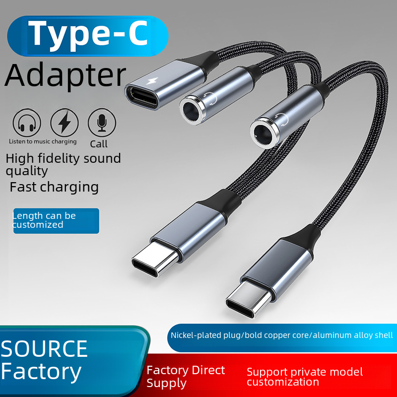 Cross border hot selling 2 in 1 multifunctional Tpyec to 3.5mm earphone adapter charging port for