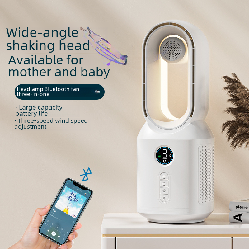 Bluetooth speaker fan 2023 new leafless desktop LED light usb rechargeable home gift creative